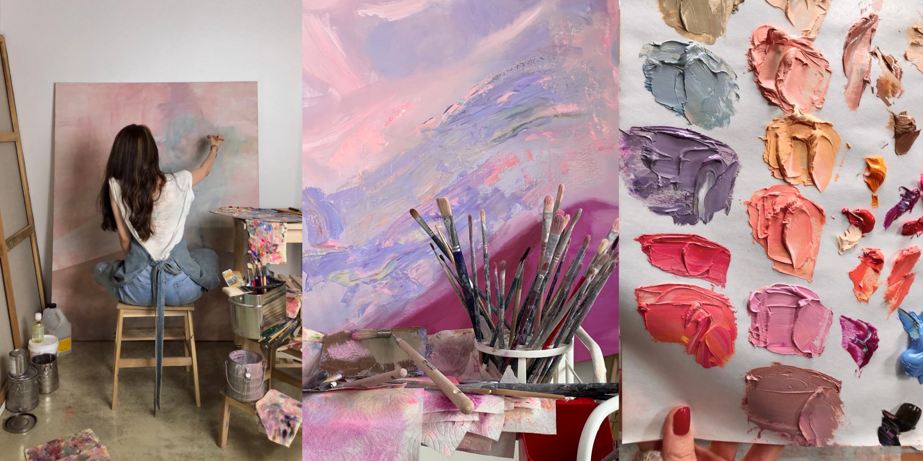 꾸덕한 붓터치 하나를 내기 위해 물감 농도를 조절하고 수십 개의 붓을 바꿔가며 고민하는 과정...